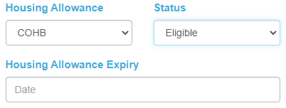 Staff can also track the clients housing allowance and housing allowance status. Should the client be deemed eligible for a housing allowance, the housing allowance expiry field will appear, allowing staff to select an expiry date via pop-up calendar modal.