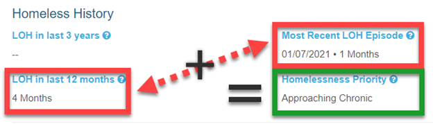 If (LOH in last 12 months) + (Most Recent LOH Episode) = 5 months or less, the priority will be set as Approaching Chronic