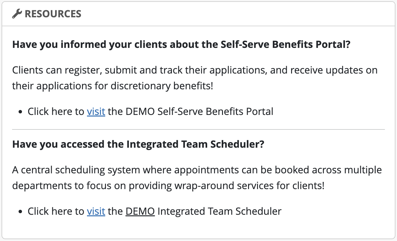 Users can click these links, which will bring them to the Client Advanced Search that shows the caseload with the appropriate filters set.