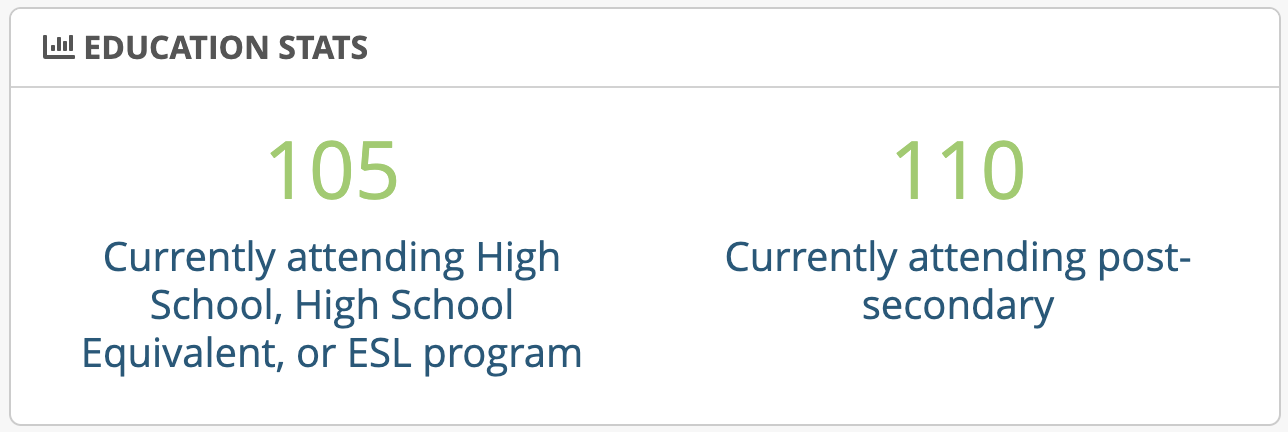 Displays a breakdown of education metrics for active clients in the entire caseload.