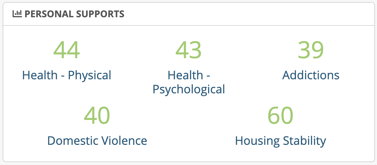 Displays the number of cases that responded YES in the Personal Supports domain of the assessment.