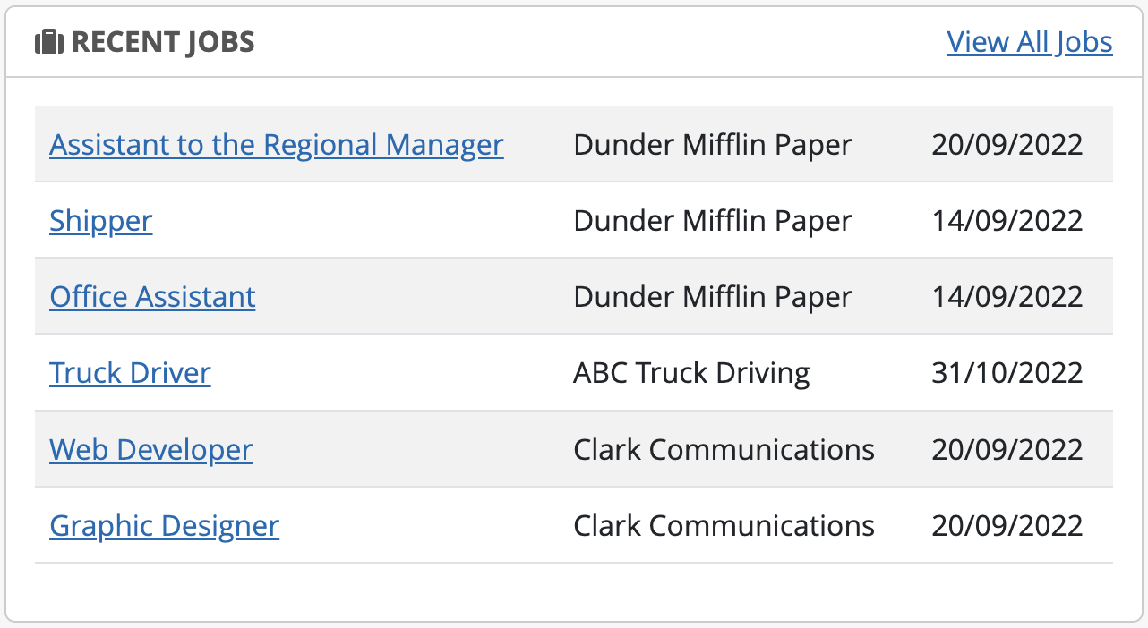 Lists newly added jobs with links directly to job profile.