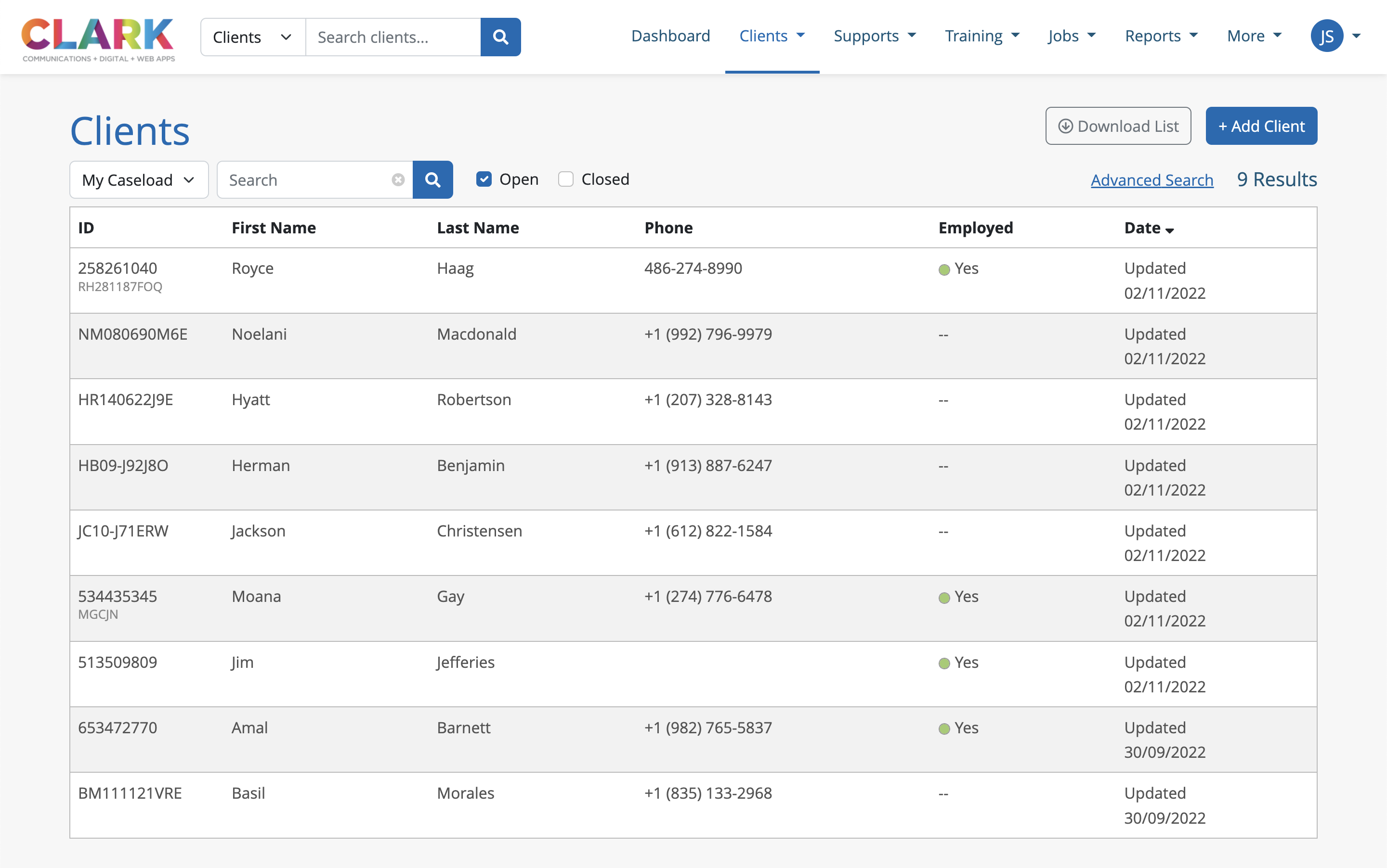 The Client System is where users manage clients in the caseload, and is organized in a way that is easy to navigate and understand as users work closely with their caseloads.