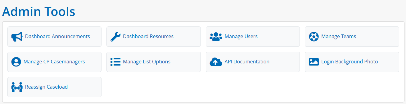 The Admin Tools system allows Administrators with the proper access and permissions to manage various aspects of the system.